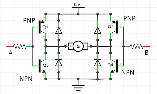Cầu H (H-Bridge) là mạch điện cho phép đảo chiều dòng điện đi qua động cơ, nhờ đó ta có thể:
