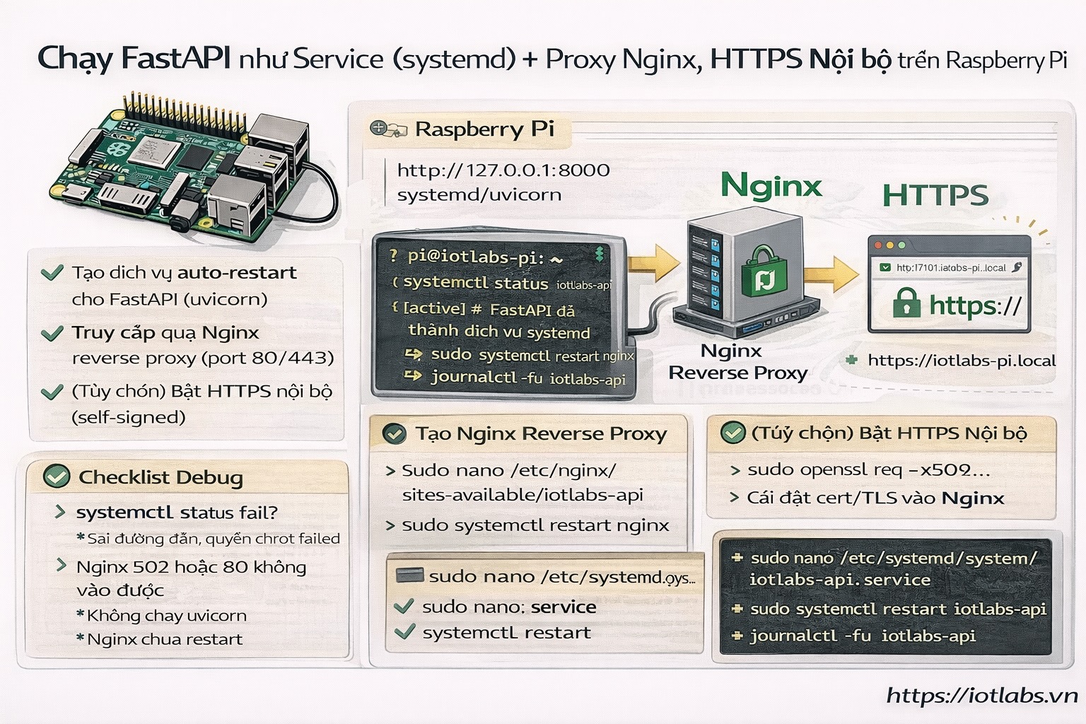 Series: Lập trình Raspberry Pi & Ứng dụng thực tế Phần 3 — Python “build app thật” Bài 17: Chạy FastAPI như service (systemd) + reverse proxy Nginx + HTTPS nội bộ