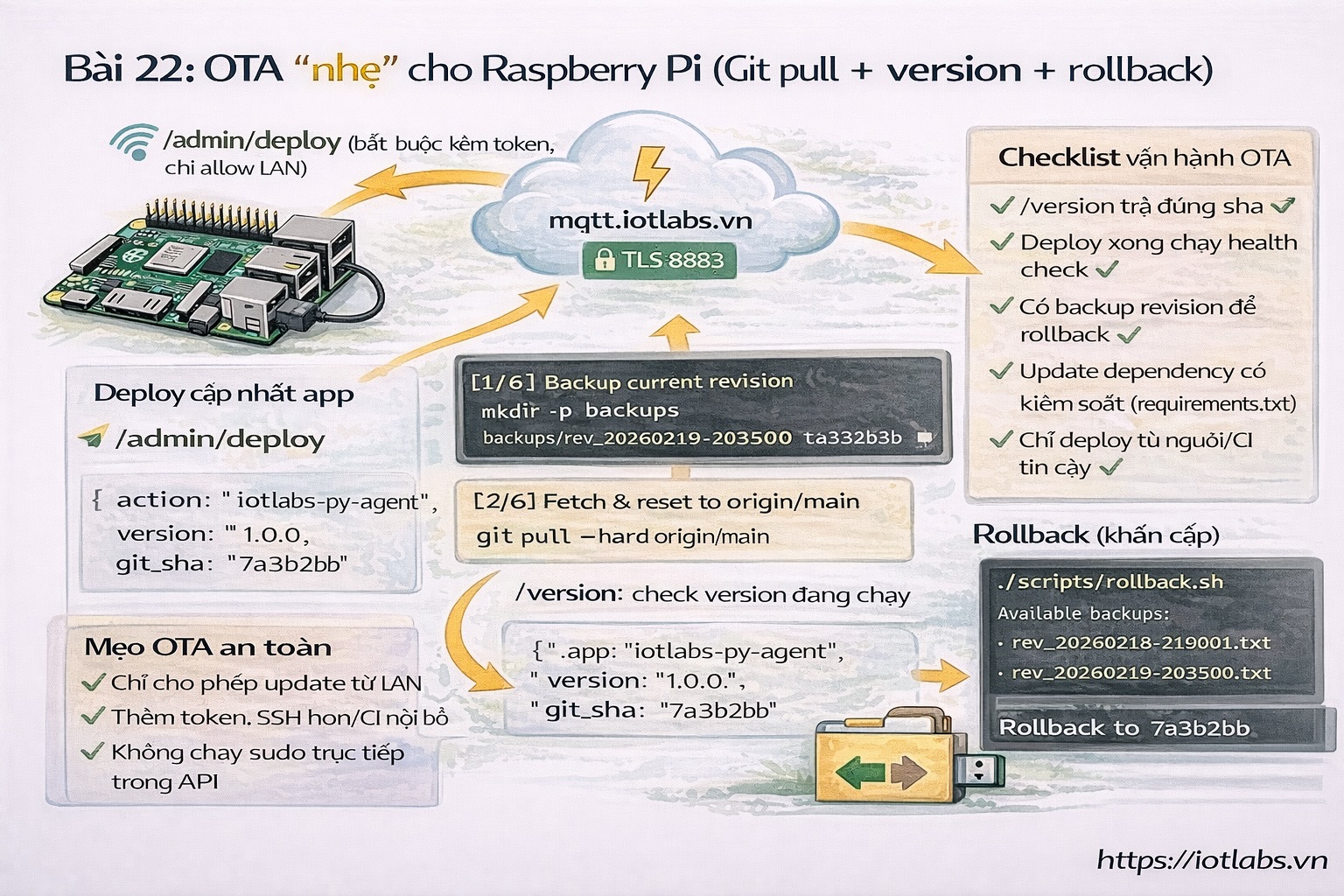 Series: Lập trình Raspberry Pi & Ứng dụng thực tế Phần 3 — Python “build app thật” Bài 22: OTA “nhẹ” cho Raspberry Pi app — Git pull + version + rollback nhanh (production-friendly)
